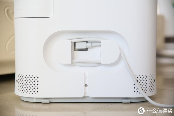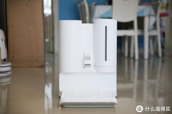 基站整体色调也以白色为主,左侧为配件箱,可以将备用滚刷、毛刷、滤芯放进去,其还自带风干功能,可以实现快速风干功能;右侧水箱自带刻度线,可以清楚看到当前水箱容量,实时进行补水,设计上基站整体表现非常和谐。