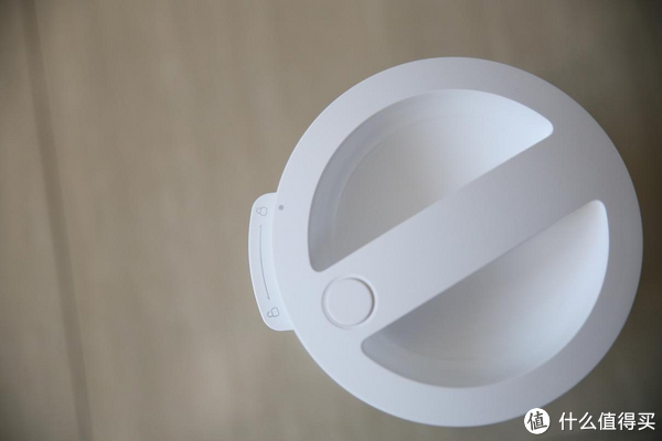 侧面看去,上部和底座都很薄,占地跟扫地机器人比起来一点也不大。