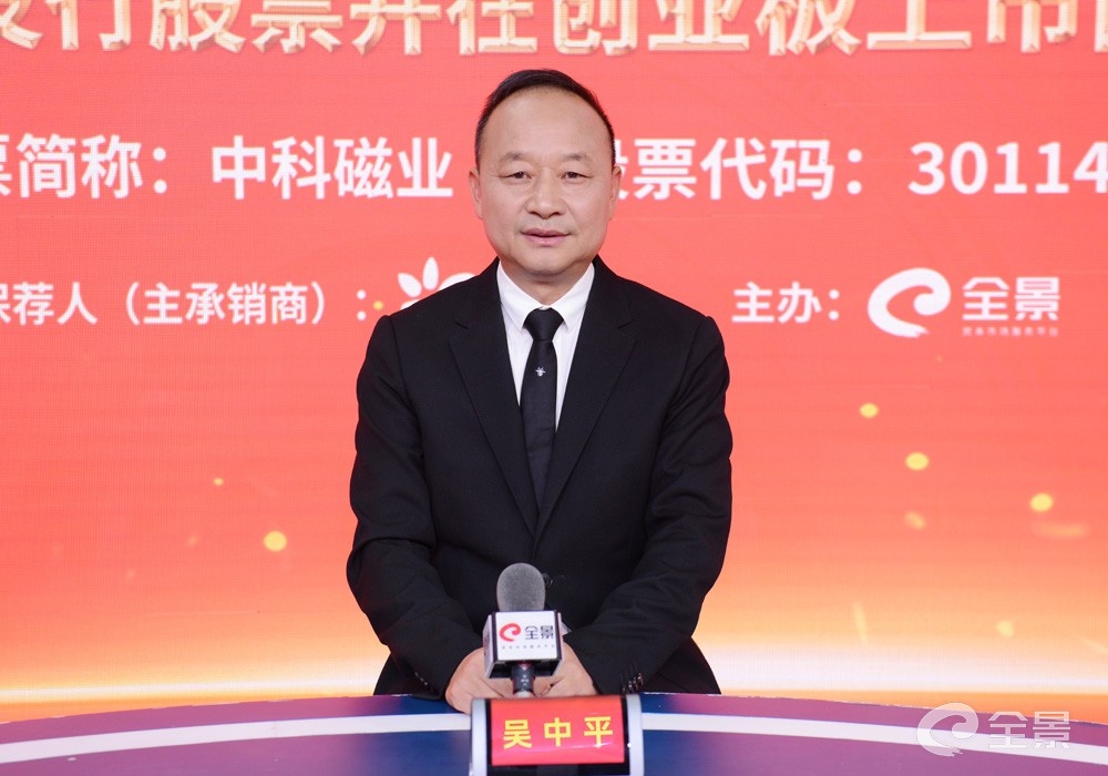 中科磁业首次公开发行股票并在创业板上市网上路演于3月22日在全景路演成功举行中科磁业董事长兼总经理吴中平,中科磁业董事、董事会秘书兼财务总监范明,天风证券投资银行总部执行董事、保荐代表人许刚,天风证券投资银行总部业务董事、保荐代表人徐衡平参与本次互动交流活动,并就公司的主营业务、经营业绩、竞争优势、募投项目和发展战略等作了总体介绍。