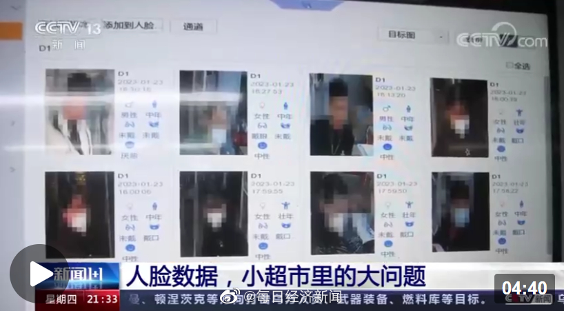 位于监控室的人脸数据处理设备上可以清楚地看到每位消费者进出超市的信息,设备也会对消费者的年龄、性别、心情、消费次数等进行后台数据分析并予以差异化提示部分消费者还被超市管理人员打上了疑似“小偷”“枪手”的标签。
