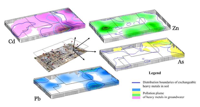 污染物主要以其离子态或可溶态存在于地下水,并通过对流或扩散随地下水迁移冶炼场地土壤-地下水的重金属异质性分布与扩散