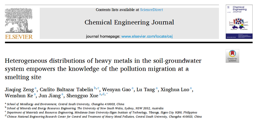 成果简介近日,中南大学薛生国教授团队在Chemical Engineering Journal上发表了题为“Heterogeneous distributions of heavy metals in the soil-groundwater system empowers the knowledge of the pollution migration at a smelting site”