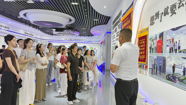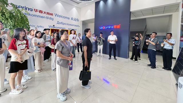 采风团首先来到华春新能源股份有限公司,华春新能源深耕太阳能复合空气源热泵清洁供热细分领域14年,是一家同时拥有新能源设计乙级、建筑机电安装一级、机电总承包、电力总承包、承装(修、试)等新能源行业的研发、设计、制造、工程等资质的国家专精特新“小巨人”企业。