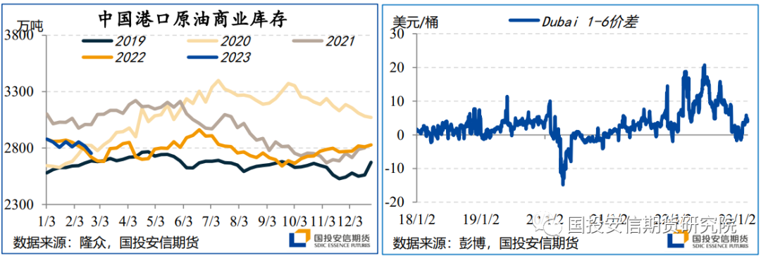 主要受到年初以来中国地面出行、国内航班等终端消费的积极变化开始在原油去库、现货采购环节有所传导的驱动上周国内港口商业原油库存下降64.9万吨至同期偏低水平,周五中油湛江及中油大连交割库合计257.6万桶的原油仓单被注销,涉及227.6万桶的阿曼原油和30万桶的上扎库姆原油,大概率将被主营炼厂消纳。