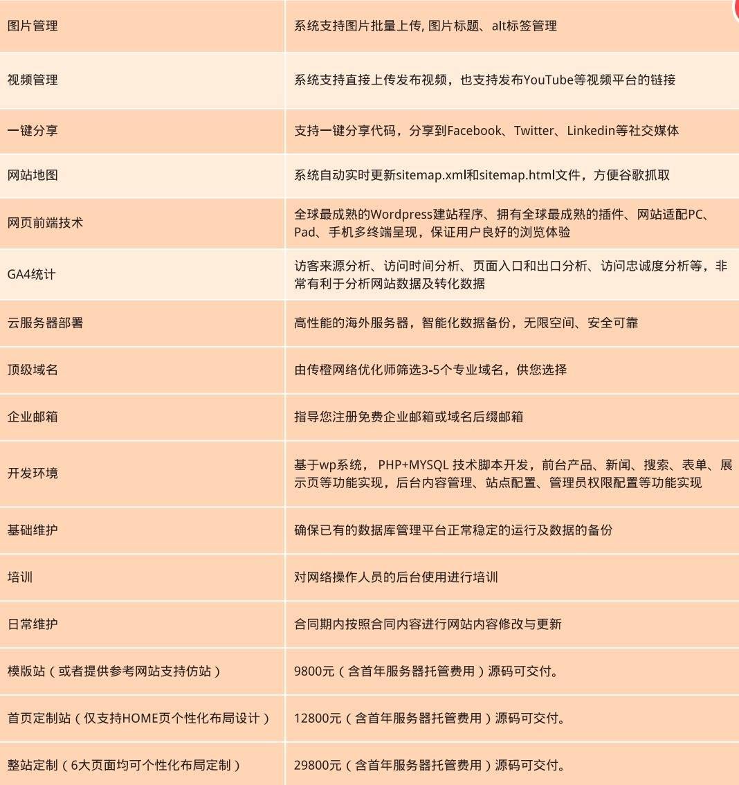 主营业务涵盖外贸独立站建站、GoogleSEO优化、GoogleAds广告投放、Facebook广告推广及谷歌GEO定向推广传橙网络坚持只针对有搜索量的目标关键词进行优化,并且仅做谷歌首页排名,承诺关键词排名首页后才开始计费。