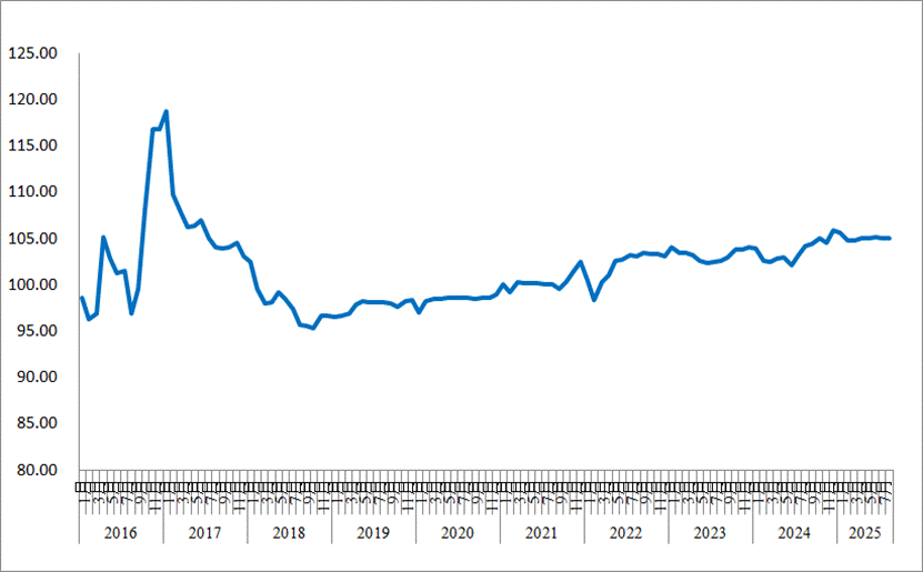 中国物流与采购联合会中国物流信息中心2025年8月份,由中国物流与采购联合会和林安物流集团联合调查的中国公路物流运价指数为105.1点,环比回升0.01%,同比去年回升0.8%从月内看,第一、二、五周运价指数环比回落,第三、四周运价指数环比回升。