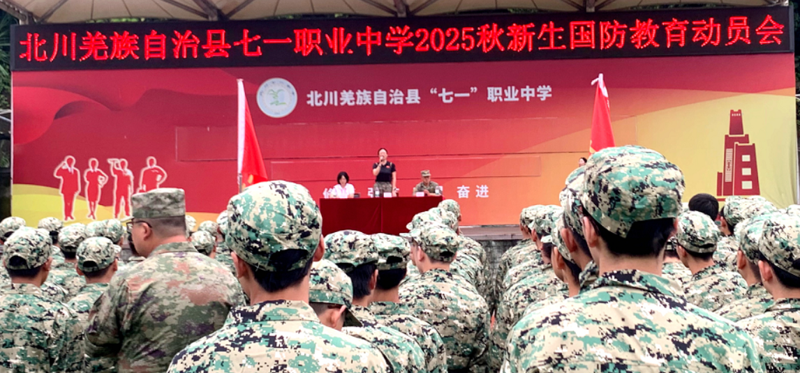 绵阳新闻网讯 为了厚植学生家国情怀,强化国防观念,全面提升综合素养,近日,北川羌族自治县“七一”职业中学(以下简称 “北川七一职中”)在足球场成功举行了以“增强国防意识厚植家国情怀”为主题的2025年秋国防教育动员大会。