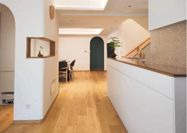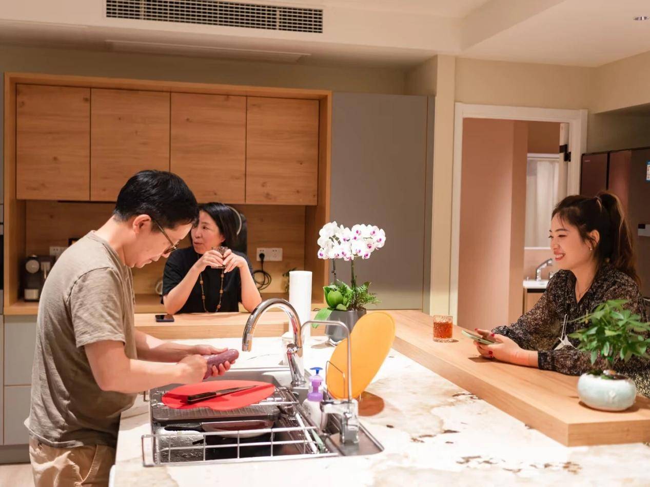 动线规划:日式装修的空间魔法日式装修对动线的精细考量,在百本木家的设计中尤为突出通过 “减少迂回和缩短距离” 的动线设计,让每一寸空间都被巧妙利用例如,日本整体厨房的洗切炒为一条动线,水槽旁放置洗碗机,先将剩饭残渣倒入水池的滤水篮中,简单冲洗后放置洗碗机中就不会有水滴到厨房地面,这种细微的动线设计非常贴心。