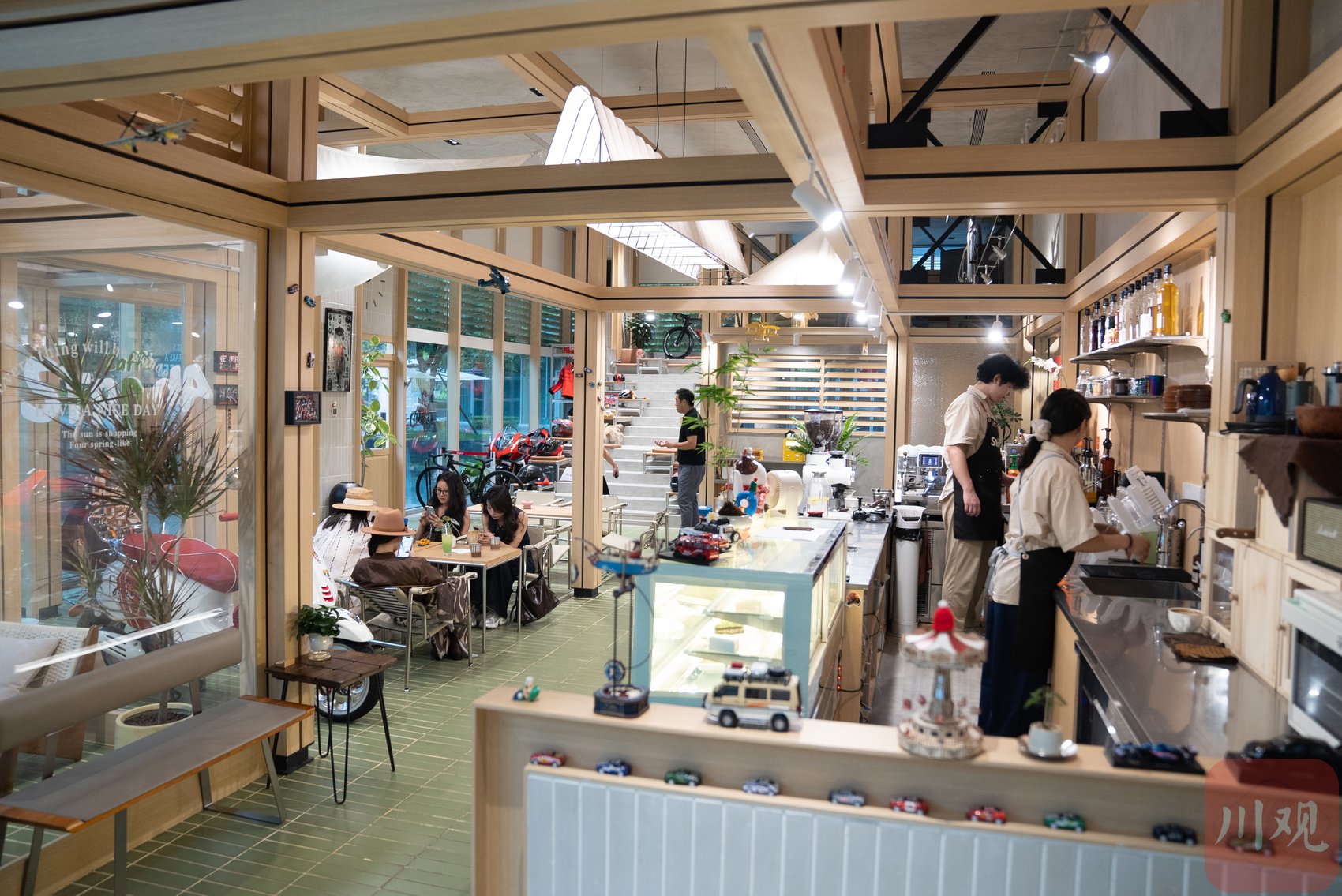 富森美天府里的门店李强 摄有啥不一样?带着问题,我决定走进富森美天府卖场里的品牌门店去一探究竟不过,刚刚走到第一家店的门口,我就困惑了:店门上写着“这是一家有趣的咖啡店”推门而入,我发现店内摆放着山地自行车、摩托车,其间顾客们三五成群,正坐着喝咖啡、聊天小聚——这家店给我最直观的感受就是,它不像店,而更像是一个日常生活场景。