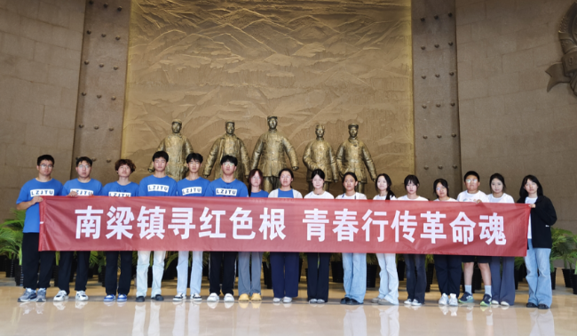 一张张泛黄的历史照片、一件件弥足珍贵的革命文物、一个个催人泪下的红色故事,与讲解员哽咽的讲述相互交织,让实践团成员对南梁精神的深刻内涵有了更为真切的体悟与升华 参观结束后,实践队员来到纪念碑前,深深三鞠躬,向革命先烈致以崇高敬意;带队教师带领党员重温入党誓词;实践团成员柳永强、郭易璇朗诵经典篇目《南梁精神,光耀千秋》,激昂的语调中饱含着对革命精神的传承之志。