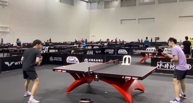 国乒也分两批抵达新加坡,参加了WTT球星挑战赛果阿站的队员在男乒主教练王皓、女乒主教练马琳的率领下,于3月6日晚从印度抵达新加坡从昨天开始,他们就在训练馆进行适应性训练在今天的训练中,樊振东与林高远同台合练,两人的状态很是放松,林高远心情大好,满脸笑容。