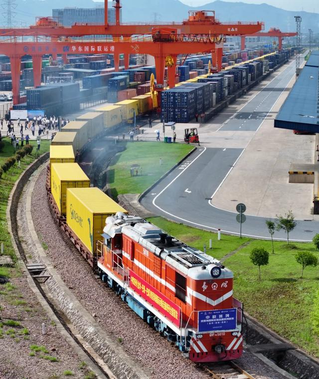 2020年9月10日,这一线路的首趟班列,开辟了跨里海国际运输走廊抵达阿塞拜疆巴库的全新“铁—海—铁”多式联运线路,较传统海运节省了约三分之一的时间,迅速成为浙江连接南高加索、中东欧及南欧的重要国际贸易大通道。