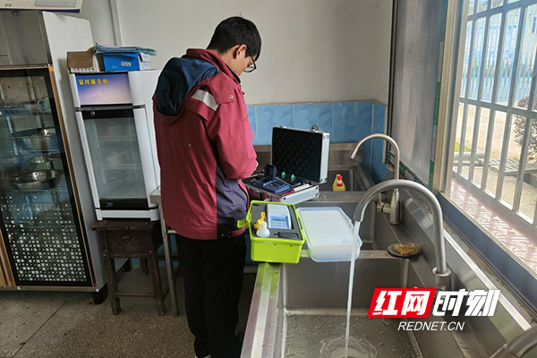 检测中,专业人员逐一对辖区的市政集中供水单位和农村集中供水的水质消毒工作、突发传染病应急预案、突发水污染事件应急预案、水源卫生防护、从业人员健康体检和培训、设施防护及周围环境、设施设备定期清洗消毒和水质自检等情况进行认真监督检查;同时对出厂水水质进行现场快速检测。