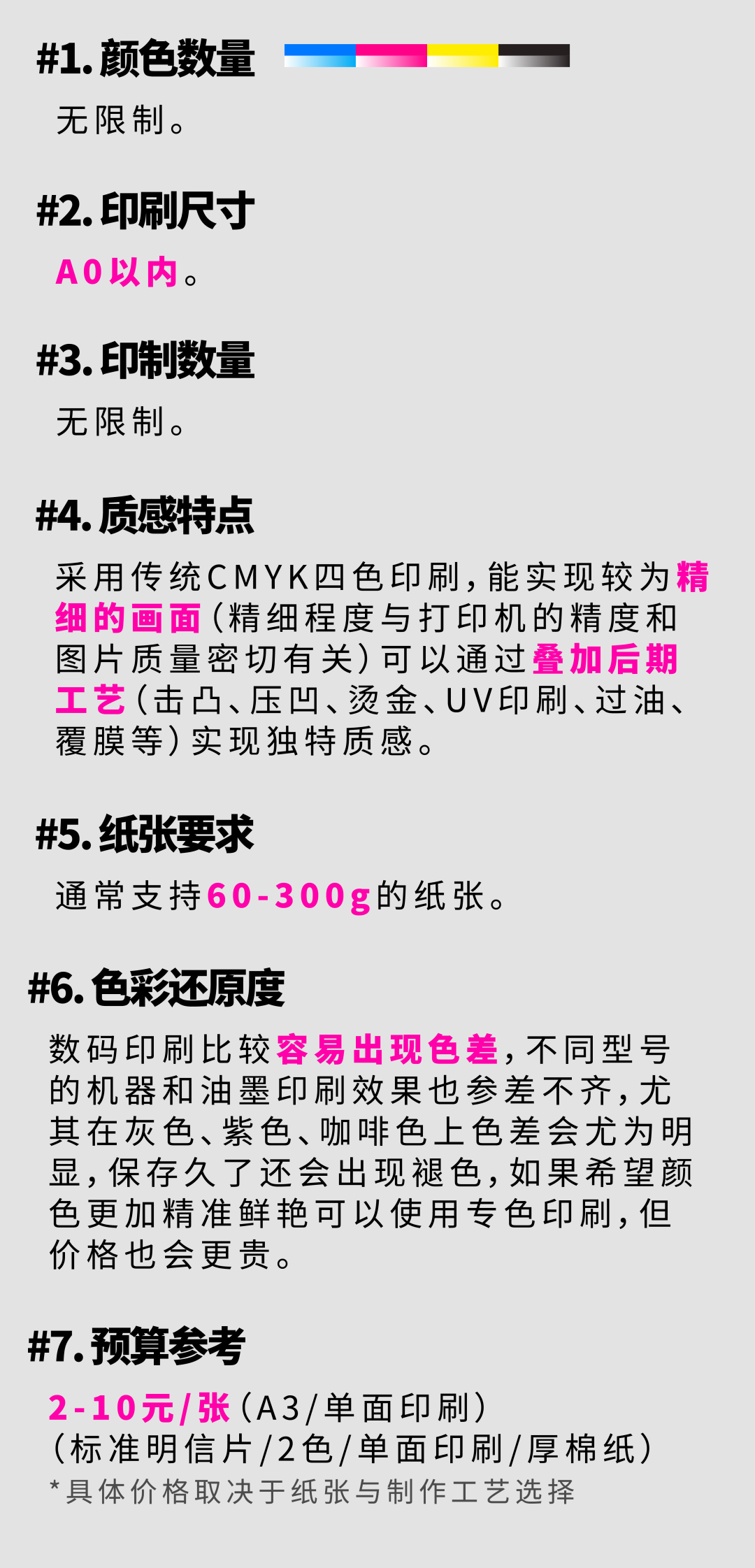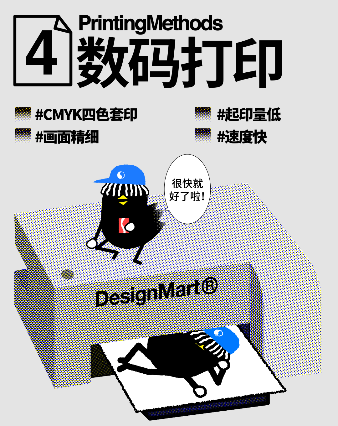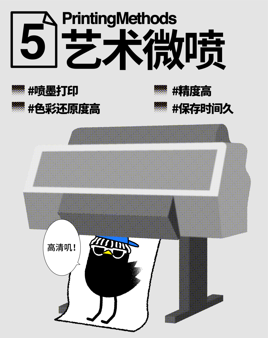 为了帮助大家最大程度地将电脑上的设计还原成现实世界中的印刷品,本期印刷鸡将会根据作品的不同需求为大家介绍5种适合小批量印刷又容易出效果的印刷方式,一起来看看吧~叽01