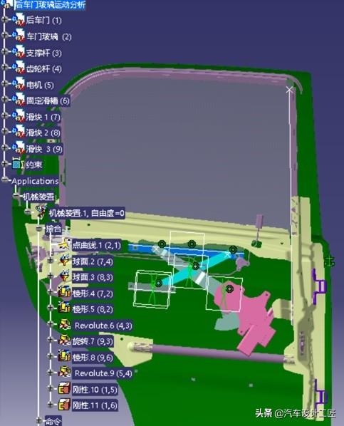 今天汽车设计工匠在制作车门玻璃布置和校核过程中,发现了一些玻璃运动布置的常见问题,讲讲汽车玻璃是如何动起来的,具体内容如下: