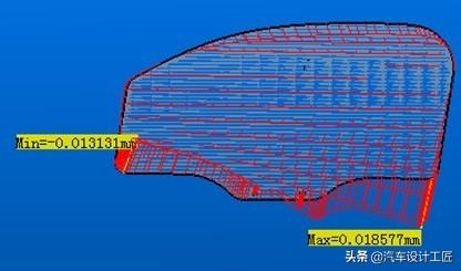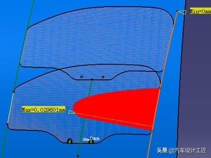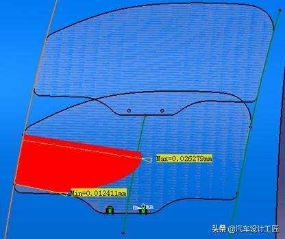 2) 、 在车门玻璃运动过程中,汽车玻璃的后边线与汽车前引导线的线差理论正确值为±2mm,,在设计过程中满足间隙要求3) 、 在汽车车门玻璃运动过程中,汽车玻璃的前边线与前引导线的线差理论正确值为±2mm,,是满足间隙要求。
