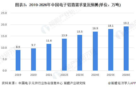预计到2026年中国电子铝箔市场需求量将达到19.2万吨