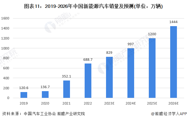 预计到2026年中国新能源汽车销量将达到1444万辆