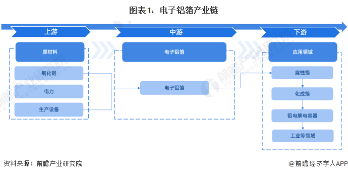 转自:前瞻产业研究院行业主要代表性公司:新疆众和;东阳光;科源电子;广西正润;南通昭和等本文核心数据:市场规模;需求量;市场份额;产销量电子铝箔行业产业链电子铝箔整个产业链覆盖上游资源及冶炼(高纯铝的生产);中游电子铝箔箔制造;下游电极箔及铝电解电容器制造。