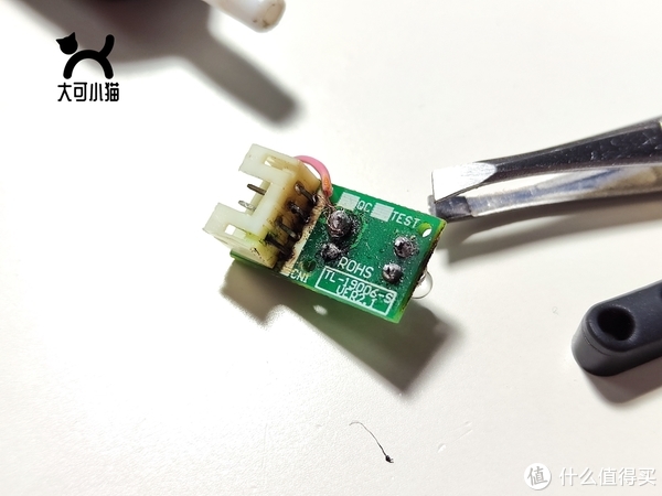 哦吼,马达居然工作了,好了,这样看来灯也是正常,问题找到,3毛钱都不要了解决:观察了一下面板,直接用了一根飞线短接灯的引脚和供电触点没有夹台,电烙铁也是10年前淘宝20块钱买的套装,所以焊的也是歪歪扭扭,焊点也不够亮。