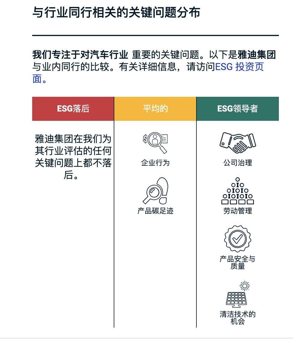 原先领先的“产品碳足迹”被下调至平均水平,原先处于平均水平的“产品质量与安全”被上调至领先MSCI的评级时常有滞后性,联系新近的雅迪电池风波,这项细微的调整可以品出更多微妙之处这次风波会影响它的下一次评级吗?。
