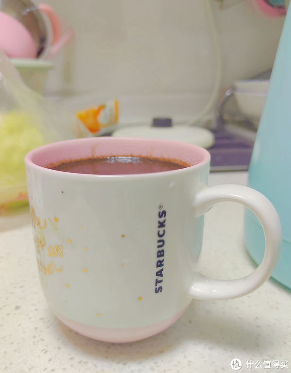 盛进公司发的星巴克咖啡杯里,试喝下,感觉苦感丰富,些许涩感,不愧是减肥圣品。