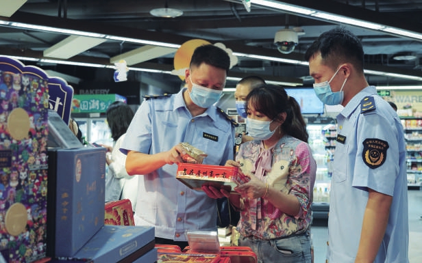 2022年8月16日,市场监管总局执法稽查局、标准技术司、驻总局纪检监察组,工业和信息化部消费品工业司以及北京市场监管综合执法总队组成督导检查组,前往北京部分月饼生产、销售企业突击检查是否存在商品过度包装、价格欺诈、搭售商品等违法违规行为,检查月饼生产、销售企业落实《关于集中整治商品过度包装、“天价”月饼和蟹卡蟹券等问题的通知》要求的实际情况。