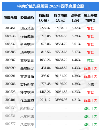 中庚价值先锋股票目前规模为68.71亿元,最新净值1.2143(3月17日),较上一交易日上涨0.9%,近一年上涨26.79%该公募基金现任基金经理为陈涛中庚价值先锋股票的前十大重仓股如下: