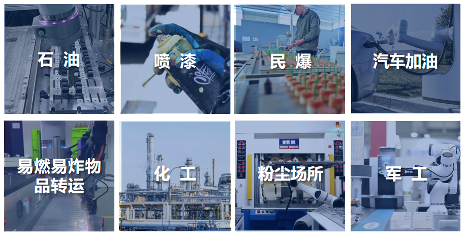 04 简单易用,灵活方便无需专业防爆及编程知识,即使零基础也可轻松上手操作;快速拖拽操作,自动编程,智能化程度高此外,还具备体积小巧,搬运便捷、占地面积小等特征05 应用广泛,拓展自如可以满足石油石化(石油冶炼、危险气体转运、环境巡查)、喷漆(金属及塑胶制品表面喷漆喷粉)、服务(如汽车自动加油、加气等)等行业的需求,同时适用于扬尘较多、液体飞溅明显的场景。