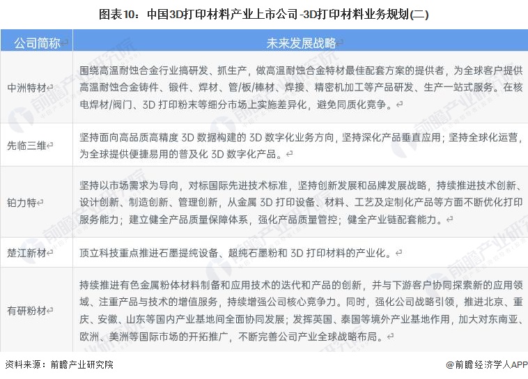 更多本行业研究分析详见前瞻产业研究院《中国3D打印材料行业市场前瞻与投资战略规划分析报告》,同时前瞻产业研究院还提供产业大数据、产业研究、产业规划、园区规划、产业招商、产业图谱、产业链咨询、技术咨询、IPO募投可研、IPO业务与技术撰写、IPO工作底稿咨询等解决方案。