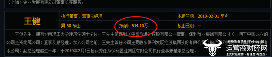 王健在保利发展担任副总经理十多年后,在2019年迎来了工作变动,这一年,他辞去了保利发展副总经理一职,开始担任保利置业董事总经理、执行董事,负责公司的营运及管理据同花顺资料显示,王健的薪酬为514.10万元。