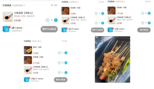 △仅选择口味就已开始计算包装费记者切换收货地址随机选择几家不同的“夸父炸串”、“彭浦一炸”烤串、炸串类店铺,这类按“串”收取包装费的情况较为普遍每一串的包装费都按照0.3到0.5元不等的价格收取,而这些店铺无一例外都只使用了一个包装盒,只有超过相当一定数量,才可能需要第二份包装盒。