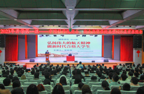 3月25日,中国科学院院士、学校名誉校长、思政课特聘教授吴宏鑫以“弘扬伟大的航天精神,做新时代合格大学生”为题,为湖北商贸学院全体学子上了一堂爱党爱国爱社会主义、勇于担当、奋发有为的思政大课本次思政课由该校党委书记、省政府教育督导专员肖坤主持。