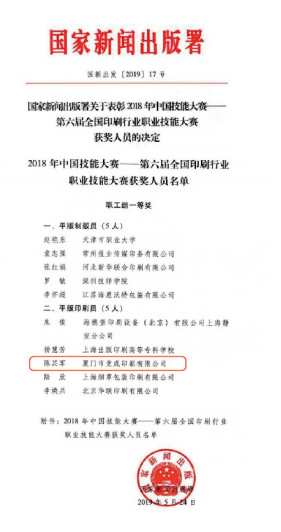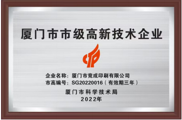 诚信、质量两手抓 完善设备促发展人无信不立,家无信不睦,业无信不兴,国无信不宁为人朴实,信誉第一,是叶常峰为人的原则,也是他做企业的准则2018年,竞成印刷获评厦门市市场监督管理局“守合同重信用”的荣誉,并被评为最具成长型中小微企业、福建省诚信印刷企业、2019年和2022年连续获批厦门市高新技术企业,公司承印的《邮票上的中国世界遗产》获得亚洲首届网络国际邮展“孟加拉2021”大镀金奖、金光印艺大奖赛优质奖;陈其军机长参加中国印刷技术比赛获得全国一等奖;产品《印象厦门》、《台湾当代美术40年》参加福建省印刷质量评比大赛中获得金奖等等。
