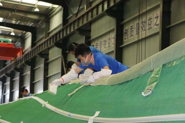 工人们向记者介绍,在车间流水线上,一块叶片的成型仅需28小时左右,生产的叶片被按需运往周边地区、省份