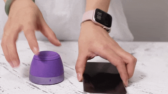 音箱很轻巧,仅掌心大小,拿手上、揣兜里、别腰上...在哪都是音乐现场。