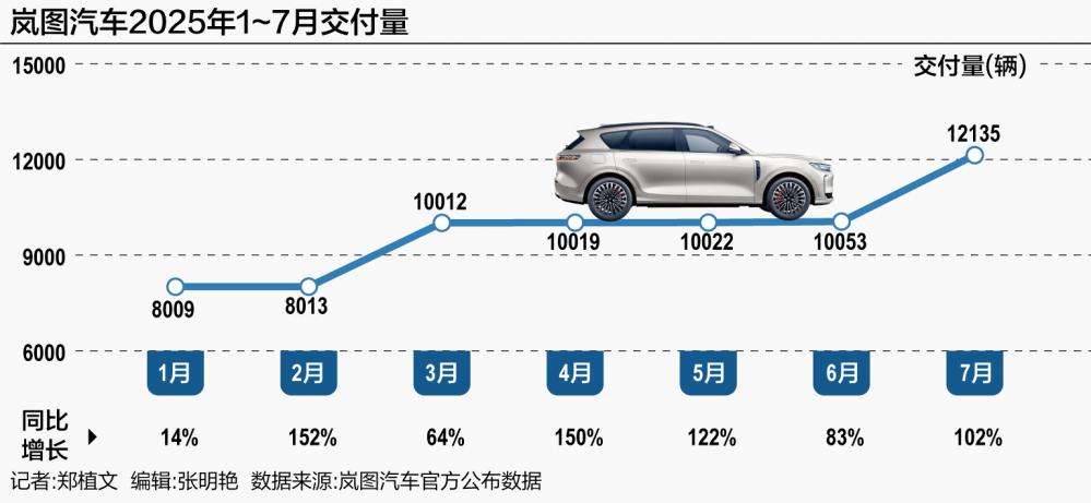 期内实现整车销量82.39万辆,同比下降14.7%,归属于母公司股东净利润0.55亿元,同比下滑近92%但反观岚图,几乎是东风体系内的唯一的亮点2024年,岚图实现交付8.57万辆,同比增长约70%;2025年以来连续5个月销量破万,根据最新财报,岚图上半年累计销量为56128辆,同比增长85%。