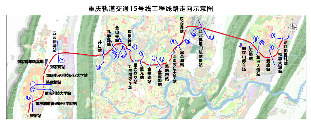15号线全线通车后将大学城、井口工业园、礼嘉欢乐谷等重要片区以及科学城高铁站、江北机场、复盛高铁站等主要枢纽串联起来,从曾家至两江影视城的运行时间控制在一小时内,将极大地满足市民出行需求,提升轨道交通运行效率,助力构建“1小时通勤圈”“轨道上的都市区”建设。