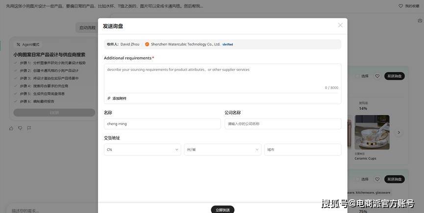 官方发布的现场视频中,阿里国际站AI项目负责人实时演示了Accio Agent,他对着手机提出设计产品和寻找供应商的需求,手机屏幕里Accio开始自动拆解方案,在几分钟的时间内完成了全网检索、出设计图、找供应商、对比参数、优中选优的整个采购过程。