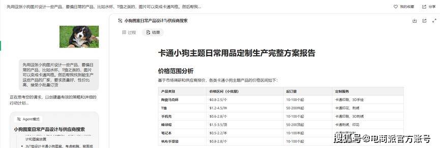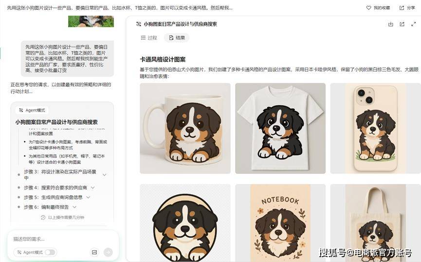 常言道纸上得来终觉浅,为了探究这款AI产品到底与众不同在哪里,《电商派Pro》亲自体验了一下我们要求Accio用一张可爱的小狗图片帮我们设计一些日常产品,并找到能生产这些产品的厂家接收到指令后,Accio很快开始分析图像、设计产品、渲染场景和寻找供应商。
