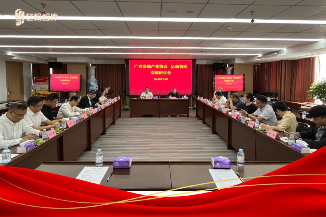 共探发展新机遇,携手赋能房地产未来9月9日,广西房地产业协会与亿翰智库在广西南宁共同举办行业交流座谈会,围绕行业形势、企业发展策略、赋能合作等议题展开深度对话广西房地产业协会党支部书记、会长梁立新,副会长兼秘书长李景新,副会长兼常务副秘书长姚奖辉,研究院秘书长唐星云;亿翰智库董事长陈啸天、总裁何慧、执行副总裁陈国胜、金波,副总裁何璐;以及深圳特区建工西南区董事长向辉、广西安信物业服务有限公司董事长黄敏、深圳能建集团西南区副总经理薛兆军、楼市花儿街创始人黄海华、广西城服商贸总经理赵辉等企业代表共同出席本次会议。