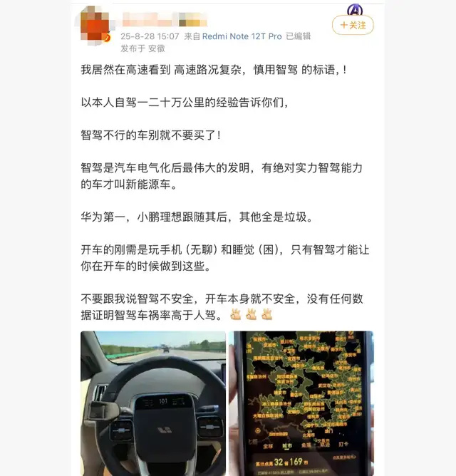 而水军的大量涌入,不仅让行业变得更加乌烟瘴气,还实实在在地坑了普通消费者:他们要么恶意带节奏、要么排队刷好评,更可怕的是,他们还会发布虚假的“车主实测”,夸张演示某些不成熟的功能,例如开着L2辅助驾驶在车上睡觉,导致一些认知尚浅的“萌新”车主也跟着模仿,埋下极大的安全隐患。
