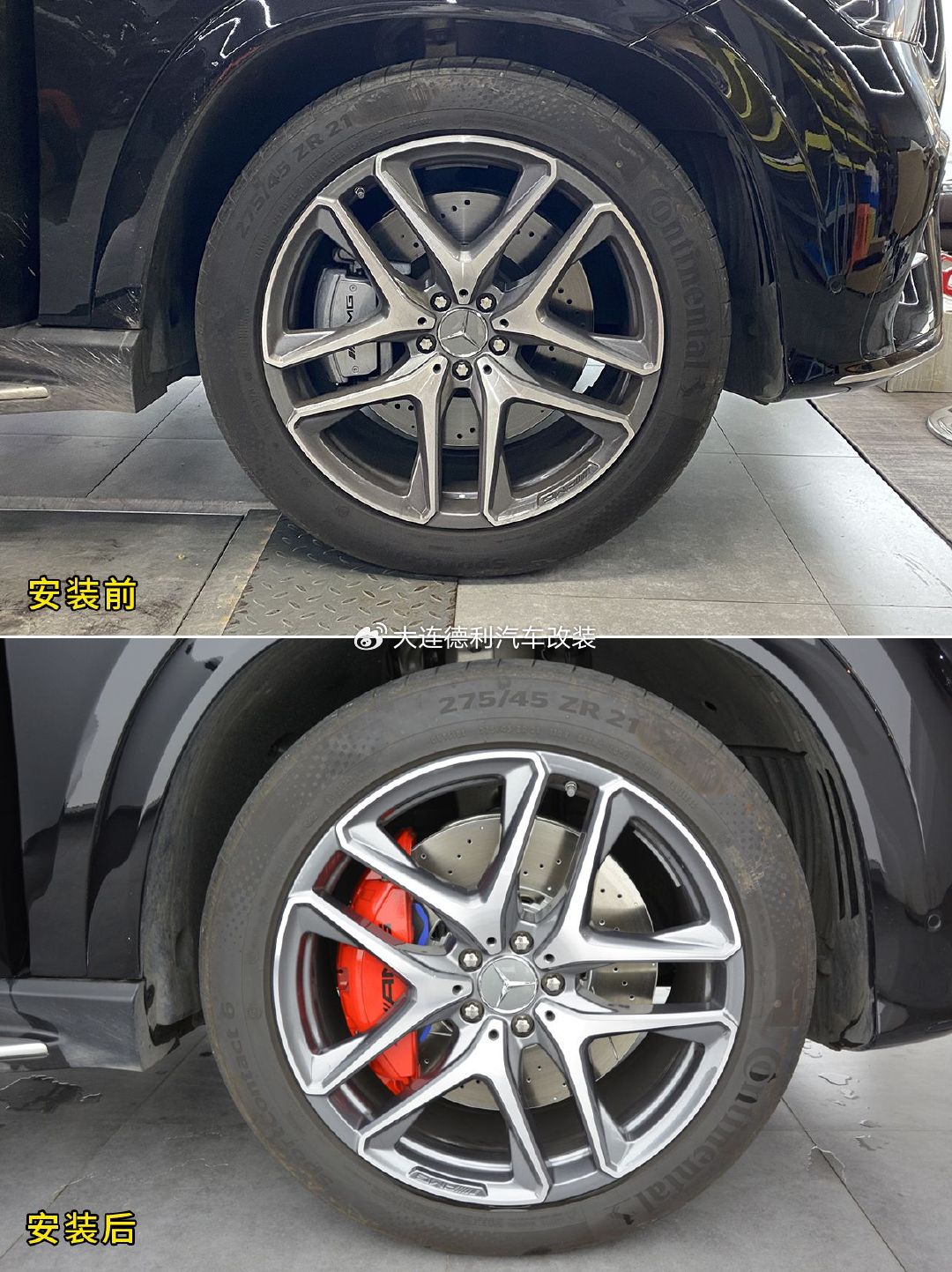 外观颜值提升:AMG 标志性的红色或银色涂装卡钳,自带 AMG 激光蚀刻 logo,搭配大尺寸刹车盘,填充轮毂后饱满度提升,运动气质大幅增强,彰显车辆的高性能身份安装与匹配精准:专车专用桥位,无需改动悬挂和轮毂结构,可保留原厂 ABS、ESP 等电子系统功能。