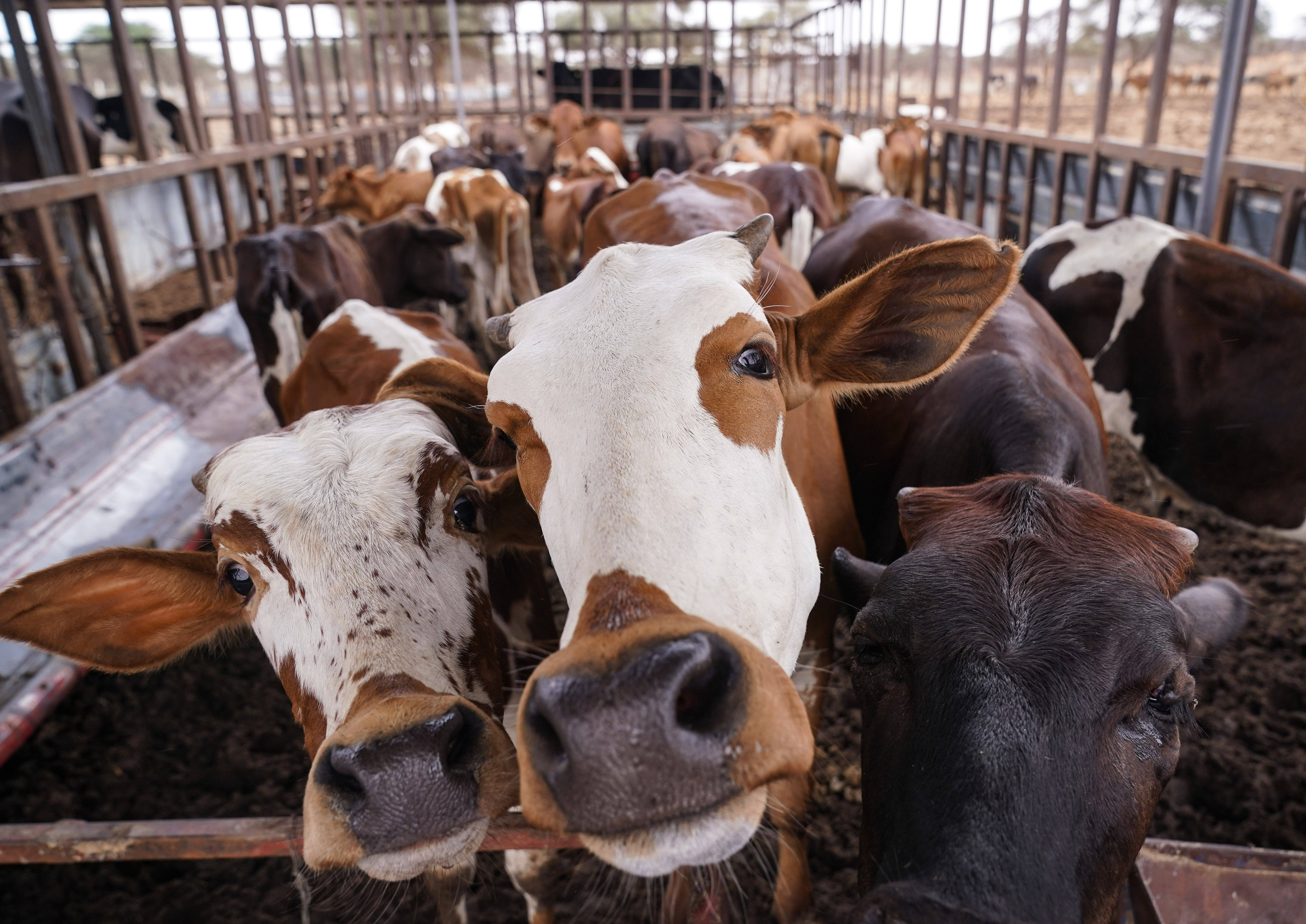 7月15日,在毛里塔尼亚提根特,牛群聚集在一处经中国援毛里塔尼亚畜牧业技术示范中心专家指导建设并改造的牧场内。 新华社记者 韩旭 摄