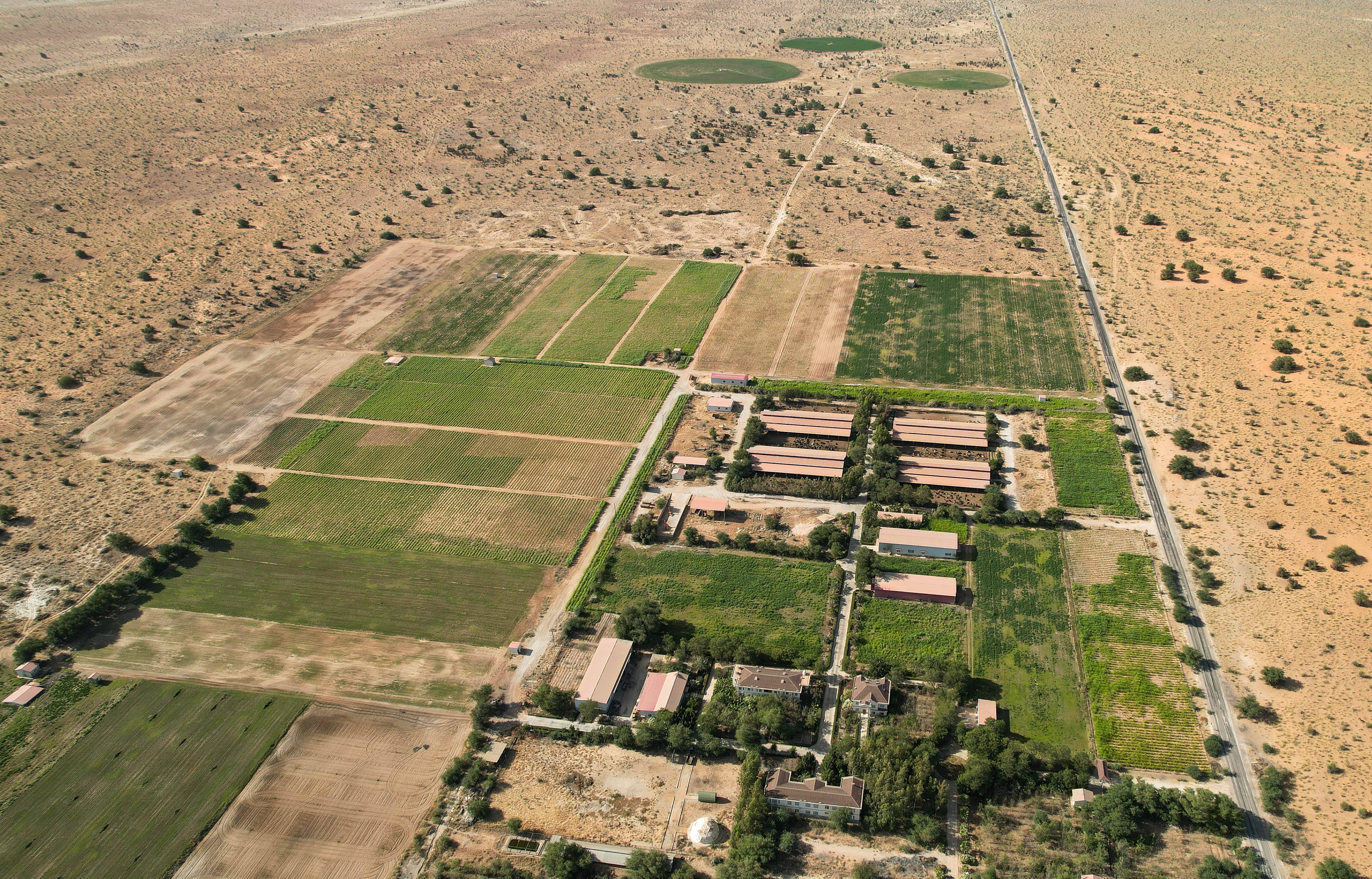 这是1月18日在毛里塔尼亚伊迪尼村拍摄的中国援毛里塔尼亚畜牧业技术示范中心(无人机照片)。 新华社记者 司源 摄