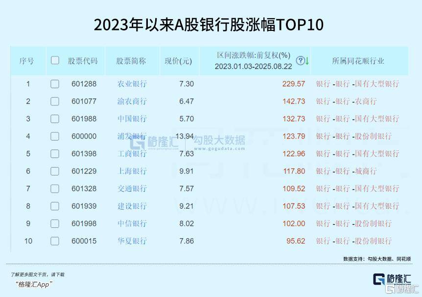 作者 | 哥吉拉数据支持 | 勾股大数据(www.gogudata.com)如果说2023年以来,什么板块涨幅最大,AI、机器人等产业链成长赛道必然实至名归但其实浓眉大眼的银行板块,涨幅同样异常出色2023