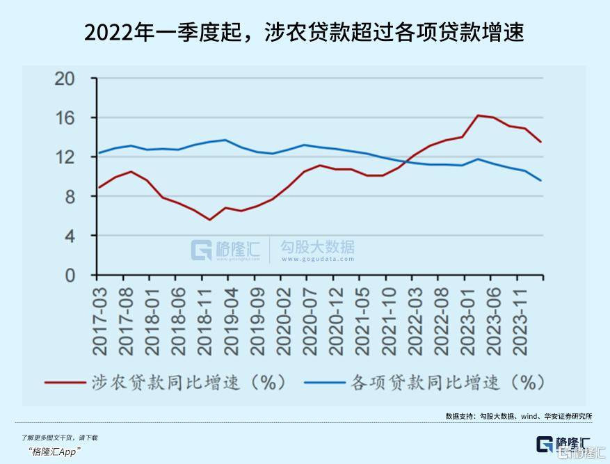 实际上,2018年以来,随着城镇化率增速放缓、叠加多项乡村振兴政策助推农村经济高速发展,如农业银行这种深耕县域的银行在客群、规模方面的增速是相对其他银行是更快的2023年,农业银行的末县域存款余额达123317