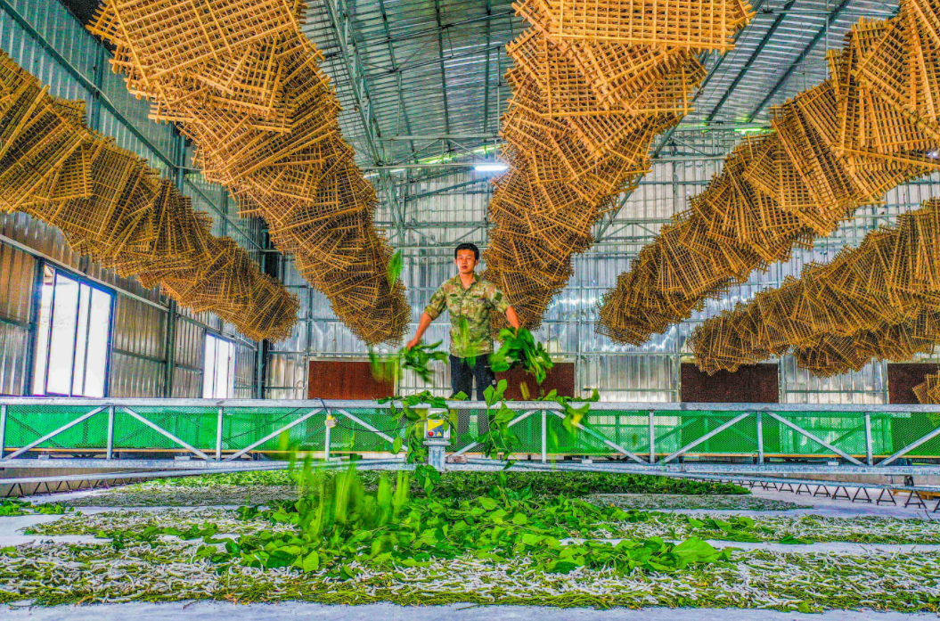 日前,步入蒙山县西河镇古排村的立体化蚕房,映入眼帘的是多层立体式的养殖架,蚕宝宝们正趴在桑叶上大快朵颐与传统蚕房相比,多层立体的养殖模式实现了空间、资源的高效利用养蚕大户徐志强说:“这座1440平方米的蚕房具备年养殖50张蚕、采收8批次蚕茧的生产能力,预计全年总产值可突破120万元。