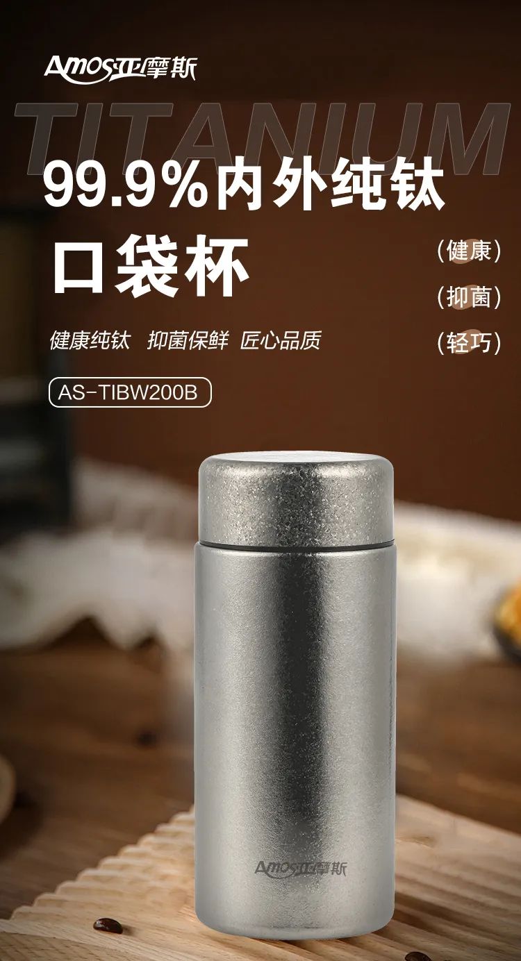 亚摩斯纯钛口袋杯这款纯钛口袋杯堪称为“生命金属”它内外均为99.9%纯钛打造